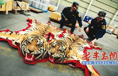得到線索后,海關(guān)緝私部門立即趕赴煙臺,到黃某的暫住地進(jìn)行搜查,執(zhí)法人員共搜出虎皮一張,虎鞭、虎膽、虎牙制品各一件,虎骨若干。加上執(zhí)法人員9月21日查扣的那張虎皮,涉案總額達(dá)100萬元。同時,執(zhí)法人員將另一名涉案的中國籍犯罪嫌疑人抓獲。