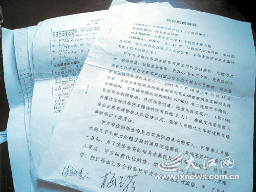 11月7日,徐金香的兒子鐘擁軍告訴記者,他們親屬對于這張《代位賠償協(xié)議》非常不滿。因?yàn)楫?dāng)鐘履玲帶著賠償協(xié)議和16萬多的賠償金回到九江后,親屬們拿到協(xié)議書一看,發(fā)現(xiàn)了讓人不滿的條款。