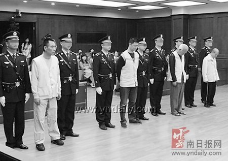 6月26日,昆明中院對(duì)臺(tái)灣省人鐘萬(wàn)億販毒案依法作出一審宣判,以走私、販賣、運(yùn)輸毒品罪判處主犯鐘萬(wàn)億死刑,剝奪政治權(quán)利終身,并處沒(méi)收個(gè)人全部財(cái)產(chǎn);判處被告人鐘溪洲死刑,緩期兩年執(zhí)行;判處被告人王俊鵬有期徒刑15年;判處被告人劉文嵩有期徒刑15年。