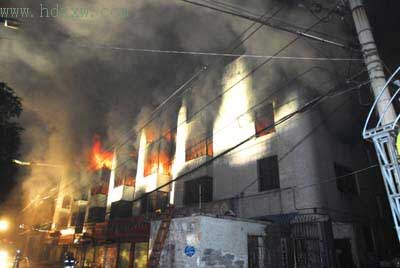 吳女士告訴記者,下午5:30,大部分工人已經(jīng)下班,當(dāng)時(shí)她正在5樓辦公。沒(méi)多久,工廠起火,她忙打電話叫仍在廠里逗留的幾個(gè)員工疏散,沒(méi)想到,等她出門時(shí),大火已經(jīng)擋住了樓梯通道。