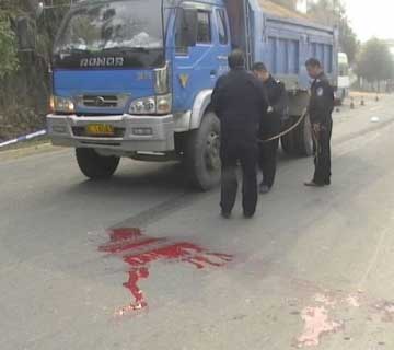 當(dāng)日上午10時(shí)15分,一輛牌照為鄂LA5577的中型自卸車滿載一車河砂向執(zhí)勤點(diǎn)駛來(lái),副中隊(duì)長(zhǎng)方聲白即上前打手勢(shì),指揮車輛靠邊停車。當(dāng)該車剛停穩(wěn)接受檢查時(shí),一輛牌照為鄂L14043的中型自卸貨車滿載一車河砂,從洪港方向快速駛向方聲白,瞬間將方聲白撞倒。貨車前左輪輾壓著方聲白襠部向前推行,公路上當(dāng)即留下一條26.2米長(zhǎng)的血肉拖痕。