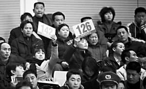 這是地壇廟會(huì)拍賣(mài)的現(xiàn)場(chǎng),100多名商戶(hù)正爭(zhēng)奪明年春節(jié)廟會(huì)的45個(gè)飲食攤位。