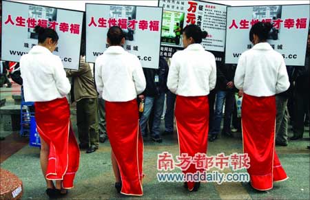 一名男子花800元,請(qǐng)四名靚女舉著“萬元紅包征‘無性!蓛骸钡呐谱,在華強(qiáng)北征經(jīng)濟(jì)條件差且無能力娶老婆的人。如果條件符合,決定花一萬元幫助無力娶妻的男人娶回老婆,并考慮幫助其解決工作問題。