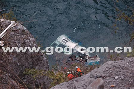 2月12日14時(shí)30分,一輛車(chē)牌號(hào)為貴C09318的大客車(chē)行駛至仁懷市合馬鎮(zhèn)鯉魚(yú)灘S208X線109KM+150M處,墜入50多米深的赤水河中。截至2月13日下午止,現(xiàn)場(chǎng)搜救工作已全部結(jié)束,該事故共造成23人死亡,2人重傷,11人輕傷。
