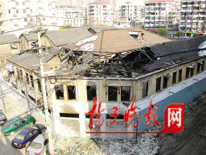 據(jù)離遺址僅一街之隔的一位賣水產(chǎn)的王勇先生反映,大火是在初一零點(diǎn)二十分開(kāi)始的,大火燒得相當(dāng)厲害,由于該處建筑已經(jīng)封存,趕來(lái)的三輛消防車只進(jìn)來(lái)了兩輛。一個(gè)多小時(shí)后大火才被撲滅。