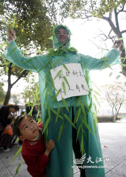 昨天是植樹(shù)節(jié),省城八一公園內(nèi),幾棵奇怪的“大樹(shù)”和“花”吸引了游人的目光。一個(gè)小男孩上前用勁一抱,沒(méi)想到這些“樹(shù)”竟然會(huì)動(dòng)。