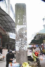 昨日記者專程來到中和鎮(zhèn)政府門前30米的一個街道拐角處看到,一塊高約5米的正方形石柱矗立在街道中央,石柱的正前方刻有“抗美援朝烈士紀念碑”9個楷體大字。碑的右面書有“謝興發(fā)、劉元明烈士,1951年12月30日敬立”字樣。紀念碑的四面都貼了不少廣告單,有“住房出租”、有“治療結(jié)核病”等,還有一些則是“性病?啤钡鹊。紀念碑基座上,還有生意人擺放了不少干雜貨物在此兜售。