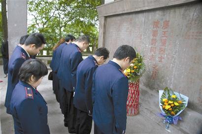 昨日,在此陵墓前,岳池縣國稅局的干部們前來悼念,并打掃了陵墓前的清潔衛(wèi)生。對于父母的烈士陵墓,廖亞彬坦言:“政府對我父母的英勇事跡沒有忘記,也經(jīng)常組織人員前來祭奠,我們很滿意。”