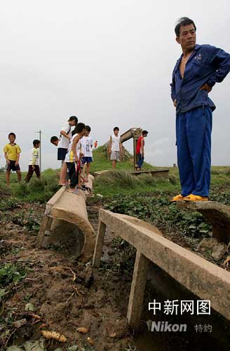 記者十三日下午趕到事發(fā)地點(diǎn),看到村子里許多樹木被風(fēng)吹得東倒西歪。在龍卷風(fēng)襲擊最為嚴(yán)重的地方,一座用水泥鋼筋建的水渠倒塌了近五十米,殘碎的遺留物散落在農(nóng)田上,一段沒有被吹倒的水渠部分頂柱出現(xiàn)了斷裂。