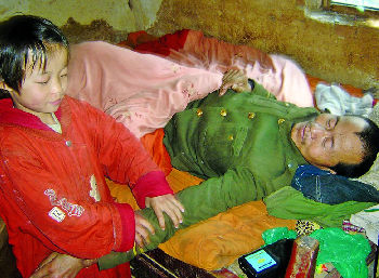 小秋偉的父親馬懷福癱瘓在床,他躺在靠近窗戶的一張床上,臉龐黃瘦,雙手瘦得只剩下一層老皮,身上蓋的棉被有四五處露著棉絮。