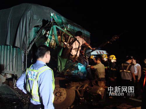 京珠高速韶關境內兩大貨車相撞3人受傷(圖)