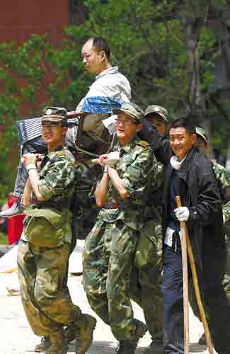現(xiàn)場到處都是尸體,但身邊不斷奔走著抬著救出的生還者。那一刻,記者在悲痛的情緒中,心底涌動的還有對生命重生的欣喜。(趙世龍 闕道華 宋金峪 陳文筆 陳秋明 趙世龍/圖)