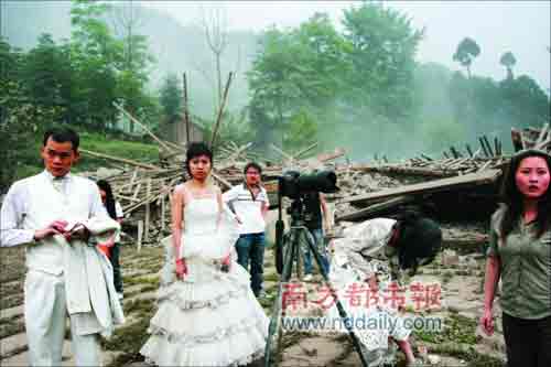 汶川地震以來,不斷有災(zāi)區(qū)的網(wǎng)友找到上網(wǎng)途徑,講述他們慘痛經(jīng)歷。前天,一組地震瞬間拍下的婚紗照在網(wǎng)上出現(xiàn),讓觀者如同一起經(jīng)歷了那個驚心動魄的瞬間。