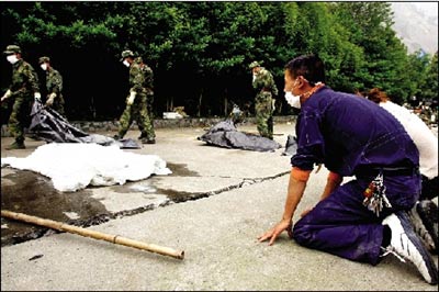 昨天一上午,官兵們共挖出3名被埋者,12點(diǎn)挖出的這名女性是黃泥村的村婦女主任,名叫劉曾群,今年50多歲。見(jiàn)到母親遺體,劉曾群的兒子和女兒哭跪在地。但3個(gè)人沒(méi)有一個(gè)是彭先根的老婆。彭先根手拿妻子11日在一處景點(diǎn)拍攝的照片說(shuō),這是她最后的照片,身后的景點(diǎn)叫龍吟瀑。地震后,龍吟瀑不復(fù)存在。