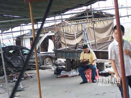 爆炸現(xiàn)場位于龍灣區(qū)龍華村D11幢道路邊上,旁邊有一個用竹簾和塑料布搭成的簡易棚,棚內(nèi)有人員聚賭。