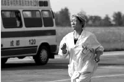 昨天下午4點(diǎn)05分,東方通用航空公司的一架米1-71直升機(jī)緩緩降落在廣漢機(jī)場(chǎng)停機(jī)坪上。艙門打開(kāi),40歲的女護(hù)士杜娟下了飛機(jī),招呼著成都120急救中心的醫(yī)護(hù)人員將傷員抬到急救車上。杜娟是北川縣禹里羌族鄉(xiāng)衛(wèi)生院的護(hù)士。5·12地震后,禹里與世隔絕,直到昨天才等到直升機(jī)將重傷者送出。杜娟隨機(jī)照顧患者。傷員都下了飛機(jī)后,杜娟向于波借手機(jī),電話打通時(shí),她手開(kāi)始顫抖,撕心裂肺的哭聲終于無(wú)法忍住。那是她六天后,第一次給外面的親人打電話。巨大的螺旋槳轉(zhuǎn)動(dòng)聲中,人們只能依稀聽(tīng)到她的哭訴:“我要去找他,不能連個(gè)尸體都沒(méi)有!庇诓乜粗,不到一個(gè)小時(shí)前,他還覺(jué)得這個(gè)女護(hù)士嚴(yán)厲得有點(diǎn)過(guò)分。
