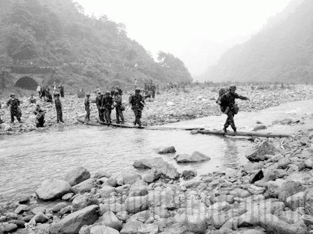 “我們?cè)谶@里等候團(tuán)長(zhǎng)和戰(zhàn)友們回來,他率領(lǐng)部隊(duì)正引領(lǐng)數(shù)百災(zāi)民從高山密林中向漢旺轉(zhuǎn)移!鼻叭19時(shí),有著“烏蒙鐵軍”之稱的解放軍某部團(tuán)政委曾祥明站在亂石嶙峋的綿陽(yáng)河上游河谷中,十分焦急地告訴記者,他們已與團(tuán)長(zhǎng)周宏許所率領(lǐng)的數(shù)百官兵失去聯(lián)系10多個(gè)小時(shí)了。