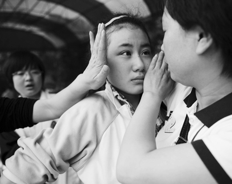 短短十幾秒里,地震越來越厲害。街上的房子開始倒塌,教室屋頂?shù)耐咂谥苋晏m頭上嘩嘩作響。她又沖進(jìn)教室,看見三個學(xué)生居然還在睡覺。急紅眼的她奮力搖醒睡覺的學(xué)生,又抓了兩個學(xué)生朝外跑。
