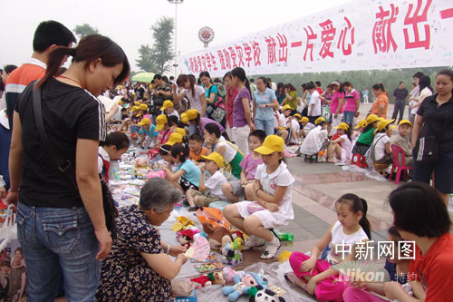 記者今日在義賣現(xiàn)場看到,伴隨著一曲動情的《小孩別哭》樂曲,眾多帶著紅領(lǐng)巾的小學(xué)生,擺出了自己珍藏多年遙控玩具、北京奧運吉祥物福娃、卡通漫畫書籍、造型奇特的文具以及各種學(xué)習(xí)生活用品,當(dāng)天的義賣會吸引了各年齡段的人群,叫賣聲此起彼伏。