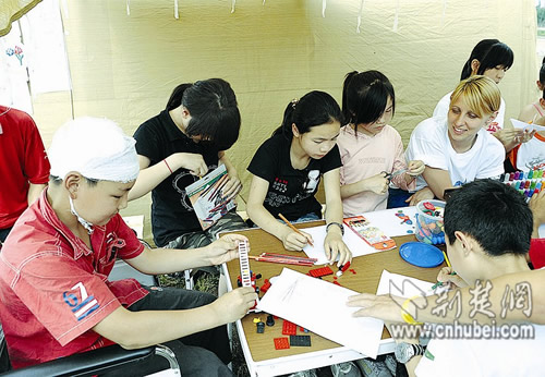 記者走進一座座帳篷,只見里面擺滿B超儀、心電圖儀、X光機和移動手術臺等,醫(yī)療人員正忙碌著為傷員們檢查、治療。“移動醫(yī)院”一角,有一座帳篷專門用于兒童心理咨詢,負責人是美麗的心理咨詢醫(yī)生奧麗婭。咨詢所內(nèi)擺放著一張方桌,上面擺滿五顏六色的水彩筆和漫畫書等,奧麗婭根據(jù)每個就診兒童的情況,為他們制訂相應的心理康復方案!霸谖倚闹,奧麗婭姐姐就像天使!11歲的吳鑫在地震中受傷,至今還頭纏繃帶,坐在輪椅上接受恢復治療。他告訴記者,奧麗婭對孩子們十分和藹,也很有耐心,經(jīng)常同孩子們一起做游戲、開玩笑,大家都很喜歡她。至目前,已有20多個孩子定期接受奧麗婭的心理治療。(特派記者 宋枕濤)