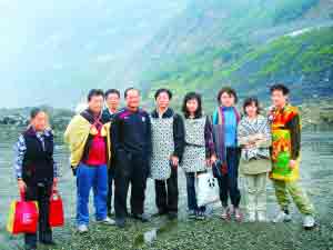“東西不要了,你們快過來,人最重要”。眼看著山上掉下來的碎石滿天亂飛。我們擔(dān)心著他們?yōu)榱宋覀兊呢斘锒俅蜗萑胛kU。終于,所有人都到了安全的地方。查看傷情時,我發(fā)現(xiàn)杭州電視臺的那位男記者胸部受到了較大撞擊,情況不妙;其中一個央視男記者鎖骨受傷,左臂不能動彈;中國日報的女記者頸椎出了問題,頭不能轉(zhuǎn)了;我的右腳經(jīng)過簡單適應(yīng)勉強(qiáng)能夠蹣跚行走;杭州電視臺女記者鞋子沒了;其他幾人大體無恙。清點人數(shù),一個不少,而遠(yuǎn)處那臺我們曾經(jīng)搭乘的汽車已被砸得像個爛皮鞋。