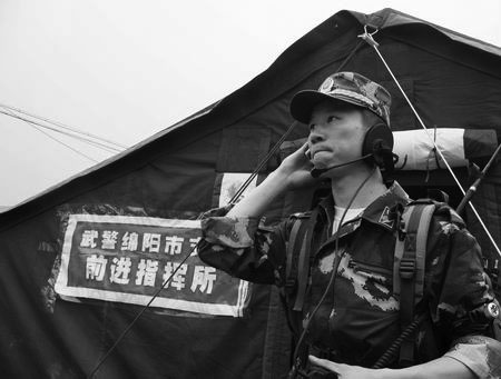 5月12日下午3點(diǎn)多,武警綿陽支隊(duì)政委徐超,帶著200名突擊隊(duì)員,向北川進(jìn)發(fā)。從出發(fā)到抵達(dá)北川中學(xué),突擊隊(duì)有一半的時間徒步前進(jìn)。隊(duì)伍中,有一個人與其他人不同,他的背上背著通信設(shè)備。他叫陸葦,當(dāng)兵8年,二級士官,是武警綿陽支隊(duì)警衛(wèi)通信中隊(duì)通信班班長,也是該支隊(duì)彼時前往北川救援時惟一的通信兵。跳過一塊又一塊橫亙在路中的巨石,陸葦夾在隊(duì)伍當(dāng)中奔跑,他聽到自己心中有個聲音在喊:“快一點(diǎn),再快點(diǎn)!”