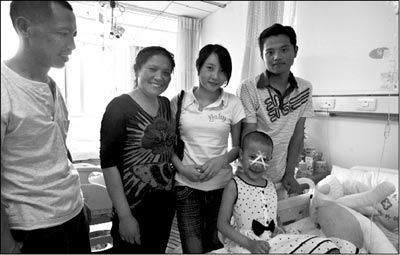 5月25日吃完午飯,一家人聚在小佳淇的病床前,本報(bào)記者為他們拍了張全家福。小佳淇爸媽和哥哥的表情都很僵硬,只有小佳淇笑得開(kāi)心,還對(duì)著記者吐了吐舌頭。