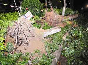 廣從公路上多棵大樹被連根拔起。喬軍偉攝