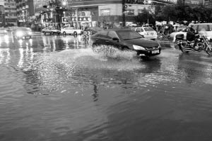 大雨過后,西園路上積水嚴重。 趙偉攝