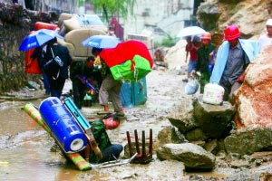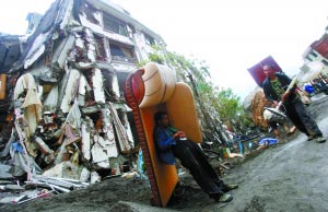 昨日,北川陰雨綿綿,從5月20日起,這里已經(jīng)封城一個月。6月20日開始,幸存的北川居民被允許進城尋找自家財產(chǎn),從城里搬出的物品要一一登記。據(jù)統(tǒng)計,昨日有近萬人進入北川縣城參與“大搬家”。
