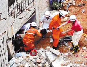 記者趕到,救援人員正在對(duì)被困現(xiàn)場(chǎng)的一名小伙子進(jìn)行緊急搶救。由于該小伙子大半個(gè)身子均被埋在泥土下,而且埋得很深,所以造成了一定的救援難度。一位在現(xiàn)場(chǎng)進(jìn)行搶救的醫(yī)生告訴記者,該小伙子頭部沒有被埋進(jìn)去,一直都有生命特征,但由于挖掘的難度大,為保住他的性命,最后的辦法只能是通過截下肢的辦法救出他。