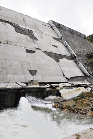 現(xiàn)場(chǎng)水利專(zhuān)家表示,經(jīng)過(guò)初步診斷,大壩出現(xiàn)了嚴(yán)重的縱、橫向裂縫,局部位移最大處達(dá)到42厘米,在蓄水位較高的狀況下,大壩穩(wěn)固已遭到破壞。據(jù)介紹:魚(yú)洞水庫(kù)的大壩在2006年已經(jīng)竣工完成,主要是作為從化當(dāng)?shù)卮迕竦墓喔、蓄水之用,但各?xiàng)加固、防險(xiǎn)措施一直在配套完善之中,并未通過(guò)上級(jí)部門(mén)的最后驗(yàn)收。