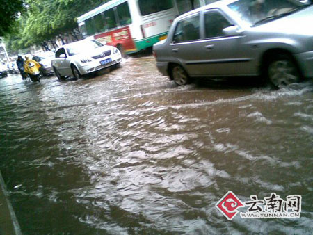 7月1日晚至今天的昆明持續(xù)暴雨,大雨再次挑戰(zhàn)昆明排水系統(tǒng),全城不同程度遭水淹,最深處已超過(guò)1米。很多早起上班上學(xué)的市民只能涉水“過(guò)河”,而車(chē)輛只能在水中“游泳”。今日凌晨,本網(wǎng)手機(jī)報(bào)彩信平臺(tái)陸續(xù)收到了熱心市民拍攝的現(xiàn)場(chǎng)圖片近百?gòu)。此次大雨淹城,距上次昆明因?qiáng)降雨造成水患僅隔半個(gè)月時(shí)間。據(jù)省氣象臺(tái)預(yù)報(bào),未來(lái)48小時(shí)昆明還降普降小雨到大雨,積水在短時(shí)間內(nèi)還將持續(xù),請(qǐng)市民提前做好出行安排。