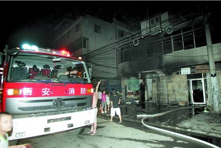 昨晚10時許,西安市邊東街瑾臻網吧突然燃起大火,大約二十分鐘后,趕到現(xiàn)場的消防官兵將火撲滅,但網吧外面已經燒得漆黑,整個二層小樓已經面目全非。“網吧在一樓,二樓沒有住人!本W吧收銀員侯先生告訴民警,當時網吧內共有54個人在上網,網吧的南門被潑進了汽油,上網者都從北門逃離,沒有造成人員傷亡。