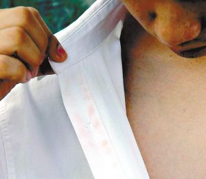 小黃驚訝地發(fā)現(xiàn),自己貼身穿了一段時(shí)間的衣服上面,東一塊西一塊全部是紅色的印跡。由于當(dāng)時(shí)小黃穿的是一件白襯衫,紅色的印跡顯得格外清晰。