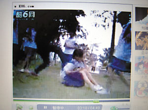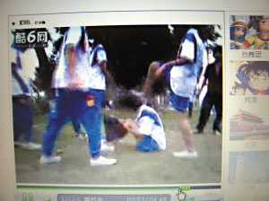 7月11日,酷6網(wǎng)上出現(xiàn)了一個(gè)肇慶某中學(xué)的女學(xué)生被打的過程視頻,視頻長(zhǎng)達(dá)4分49秒,重復(fù)兩次播放。