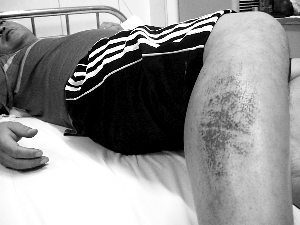 昨日,在積水潭醫(yī)院等待手術(shù)的齊景華說(shuō),當(dāng)時(shí)車(chē)速太快,他還沒(méi)來(lái)得及反應(yīng)就被“撞飛了”。