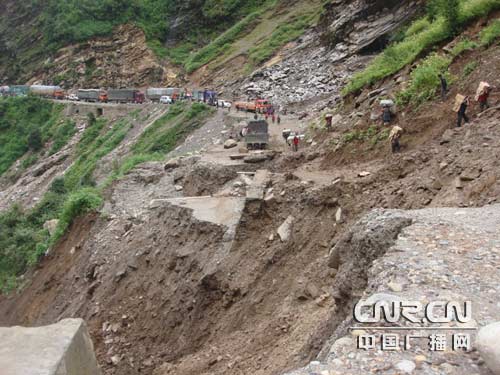 不到兩天時間,公路中段造成前后兩端400輛車輛受堵,排起長龍,上千人被困。運(yùn)送生活物資只能靠武警交通二支隊(duì)官兵臨時利用圓木和預(yù)制板搭建的人行通道快速通過。另外,公路中段造成樟木口岸油料緊缺,給搶險(xiǎn)保通帶來一定影響。西藏交通部門連同中交一勘院專家組和負(fù)責(zé)搶險(xiǎn)保通任務(wù)的武警交通第二支隊(duì),迅速組成搶險(xiǎn)保通指揮部,緊急商討制定施工方案。由于濃霧、山體滑坡繼續(xù)擴(kuò)大,加之不間斷的強(qiáng)降雨等眾多不確定因素,給整個搶通工作帶來相當(dāng)大的難度。