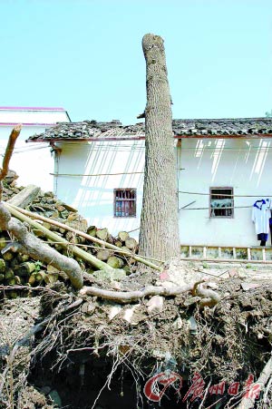 昨日上午,記者先后在隆街鎮(zhèn)立新村和古石村看到,當?shù)乇姸嘞呏窳直豢耧L吹倒,沿途隨處可見被狂風吹倒折斷的大樹,碗口般粗的大樹有的橫在路中,有的“飛”到農(nóng)戶的屋頂上,受災嚴重的鄉(xiāng)村遍地是瓦礫,數(shù)百間民房不見了屋頂。