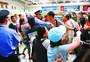 就乘客所言的“遭南航一工作人員辱罵”的情況,袁權(quán)說“沒有這回事”。機(jī)場一警官稱,當(dāng)時(shí)并非警民沖突。經(jīng)調(diào)查,系南航工作人員說了一些過激的言辭,導(dǎo)致乘客情緒失控,當(dāng)時(shí)有乘客做出了一些過激的行為,還有些人沖進(jìn)服務(wù)點(diǎn)推翻電腦,但電腦未損壞。