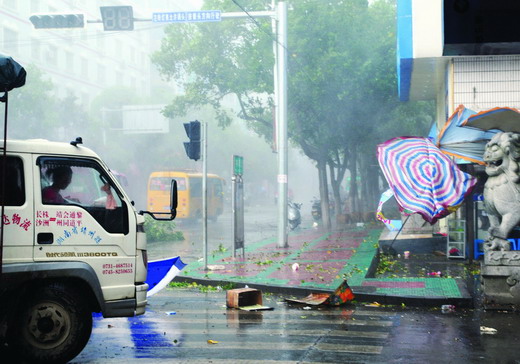 狂風(fēng)來襲,會同街頭到處凌亂不堪。