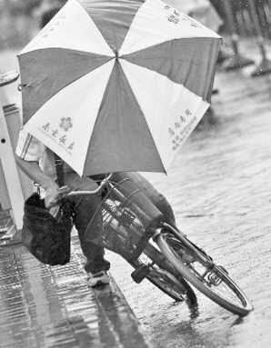 鳳凰撲來,狂風(fēng)大作,吹翻了行人的傘 快報(bào)記者 施向輝 顧煒