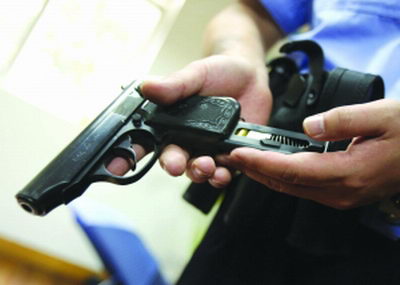 六四式手槍、子彈、辣椒水、手銬、警棍、強(qiáng)光電筒……民警們很仔細(xì)地檢查著腰帶上的警用器械,特別是手槍,他們進(jìn)行了更為仔細(xì)的檢查,以便確保扳機(jī)放在了保險上。