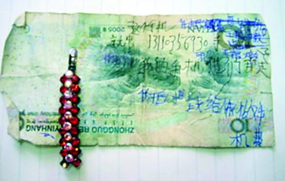 求救用的拾元紙幣和發(fā)卡。