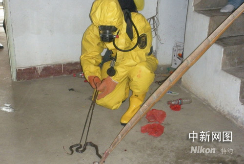 據(jù)現(xiàn)場一位有豐富捕蛇經(jīng)驗的老伯介紹,闖入民宅的為眼鏡蛇,系劇毒蛇,人一旦被咬傷后一般約在一至四小時左右才出現(xiàn)全身中毒狀,一旦發(fā)作就難以控制,嚴(yán)重者昏迷、呼吸停止,死亡率為百分之八十。