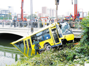 10月4日10:40,(天津)一輛638公交車與銀色松花江面包車在津靜公路與海泰大街交口處相撞。公交車沖入公路旁的河中,車內(nèi)四名乘客溺水身亡,其余八名傷員正在一中心醫(yī)院進行救治,目前均已脫離生命危險。