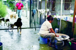 成都雙流縣彭鎮(zhèn)柑梓鄉(xiāng),遠(yuǎn)遠(yuǎn)的就能聽到從一處偏僻的農(nóng)舍里傳出的犬吠聲。這里因?yàn)槭震B(yǎng)了一千多只因地震而傷殘、流浪的貓狗,成了“愛之家”小動物救助中心。
