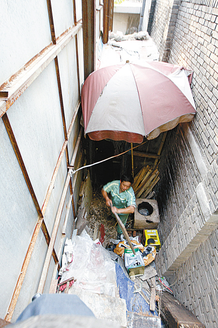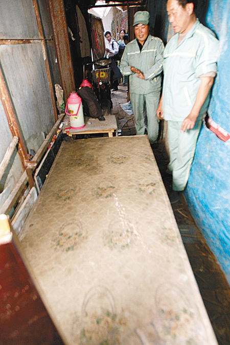 “大雁塔南面的雁塔南路,一個(gè)巨幅廣告牌后面有個(gè)長(zhǎng)方形棚子,我鉆進(jìn)去后發(fā)現(xiàn),里面是一個(gè)臨時(shí)搭起的窩棚,是保潔員搭的,他們只是想在遇到下雨下雪時(shí),有個(gè)避雨雪的地方。他們說(shuō)很羨慕有些街道有保潔員道班,可他們這兒沒(méi)有,只好自己想辦法找一處避風(fēng)雨的地方!弊蛉,一位名叫“秦時(shí)明月”的網(wǎng)友在西安一家網(wǎng)站發(fā)布的帖子引起了記者的注意,從所附的5張照片上可看到,這個(gè)搭在廣告牌后面的小窩棚內(nèi),鍋碗瓢盆俱全,還有床鋪,這個(gè)簡(jiǎn)陋的小窩成了保潔員臨時(shí)的“家”。這位網(wǎng)友說(shuō)拍到這組照片后心里發(fā)酸,在繁華都市的背后生活著這樣一群“城市美容師”,靠著堅(jiān)毅和吃苦,頑強(qiáng)地?fù)纹鹑业闹負(fù)?dān)。