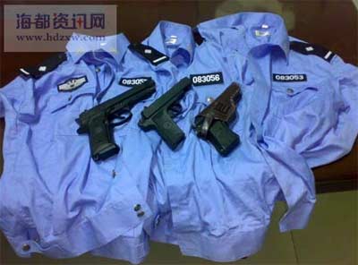 子彈上膛的刑警們撲了上去,床墊上的男子被按趴倒在地。刑警搜到部分贓款,并起獲4把手槍?zhuān)B同摔斷的微沖槍?zhuān)?jīng)鑒定全為仿真塑料槍。另外,還搜到3件警服。