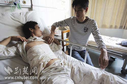 據(jù)了解,23歲的小徐是仙桃市陳場(chǎng)鎮(zhèn)人,父母在家務(wù)農(nóng)。今年6月,他攻讀完武漢大學(xué)動(dòng)力與機(jī)械學(xué)院的碩士,還欠1萬(wàn)多元的助學(xué)貸款。受傷后,他所在的單位省特種設(shè)備檢驗(yàn)所,及時(shí)給他借支了2萬(wàn)元的醫(yī)藥費(fèi)。